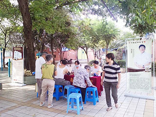 电话预约热线:2017年9月9日上午,南京华肤皮肤病研究所志愿者服务队来到了宝塔街道金陵五村休闲广场 ,为居民进行免费的健康义诊,包括测血糖、量血压、健康预约咨询、发放生活用品等服务,为小区居民送来了健康服务和人文关怀。