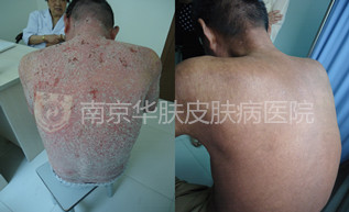患者自述:就在2016年夏天,连续几个通宵的游戏之后我发现自己的背上起了一些小红点,刮一下还掉白皮,到医院检查才知道患上了牛皮癣。开始口服点药,抹点药治疗,但很快小点遍及全身。后来转到当地医院,医生给我上了激素,小点才渐渐消失,回家后继续应用大量激素。