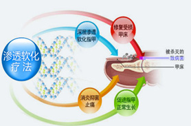 渗透软化疗法治灰指甲,采用特制的独家中药配方,可很快深入甲床深部,杀灭病菌,修复甲床,促指甲新生。