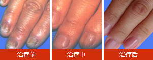 【治疗效果】:高女士 2014年3月11日到院治疗,经过陈永芳主任两次治疗后,灰指甲明显好转;3月22日,经过5次治疗后,手指灰指甲缩小了80%;3月24日,左手的灰指甲脱落;全手指恢复正常,结束治疗。