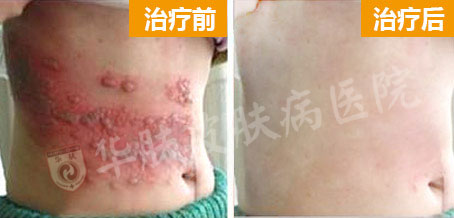 华肤医院针对带状疱疹的特点和难点,找出其邪毒留滞,瘀毒内阻治,阻遏经络,以致血瘀气滞、气血不通,故疼痛不休的病因,以内服本院中药专方,配合实施中药薰蒸、纳米波照射、红光照射、抗病毒药物注射等,达到解毒通络、活血化瘀、消炎止痛、提高机体免疫力。