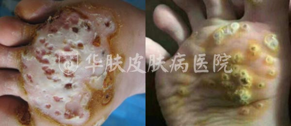 南京华肤医院专家团经过多年的临床研究发现,跖疣在传统治疗过程中一些只用外部治疗,但是跖疣可以通过皮肤的微小破损自身接种传染,从而越来越多。由于足底每天受力,再加上鞋的摩擦,所以跖疣非常容易自身接种传染;并且由于摩擦表面有很厚的角质层,给治疗带来困难,仅仅外治不仅疼痛,也很难一次根治。南京华肤通过中医结合光医学,先止痛、再平疣、继而清病毒、活血通络增强免疫力,能够达到一次性解决跖疣问题。