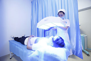 4、日光性皮炎:晒伤后的肌肤血管扩张,采用雾化、中药外敷、蓝光等治疗方法,舒缓毛细血管、修复皮损、清除色素沉着