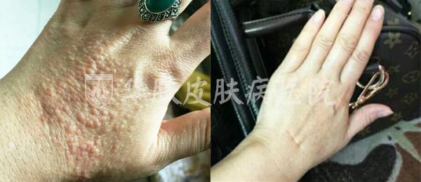 南京市鼓楼区冯大姐年后发现双手起疹子,瘙痒难忍,2月26日来院治疗,3月1日治疗结束回访无复发。