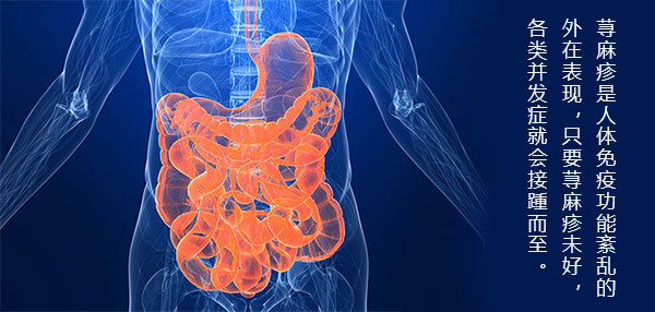 荨麻疹多伴有消化道症状,引发恶心、呕吐、腹泻、腹痛和胃肠道功能紊乱,严重时可致患者窒息而死,还可诱发内脏病变如自身免疫性甲亢。孕妇患此病则还可导致免疫性不育及流产。同时,某些特殊类型的荨麻疹,如寒冷性荨麻疹还可伴发发热、怕冷、关节痛、头痛等全身症状。