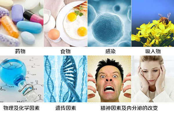 5、物理及化学因素:如冷、热、日光、摩擦及压力等物理刺激或某些化学物质诱发。
